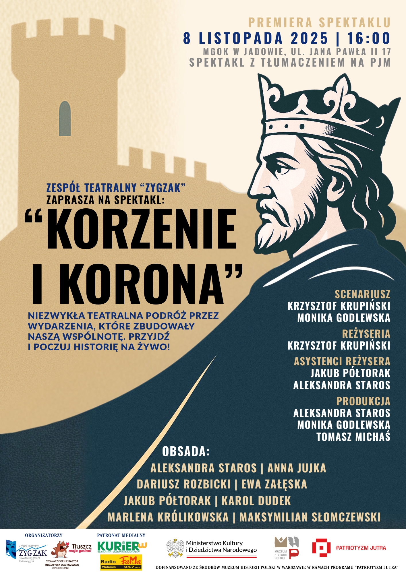 „Korzenie i Korona” to historia o odwadze, słowie i tożsamości – pełna emocji, symboli i pytań, które wciąż są aktualne. To spektakl, który łączy przeszłość z teraźniejszością, pokazując, że historia jest żywa i osobista.