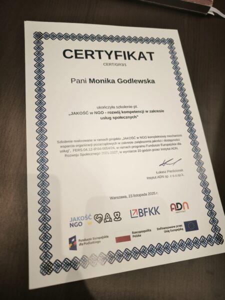 Przez trzy dni „głowa” naszego Teatru Zygzak szlifowała kompetencje podczas szkolenia „JAKOŚĆ w NGO – rozwój kompetencji w zakresie usług społecznych”.